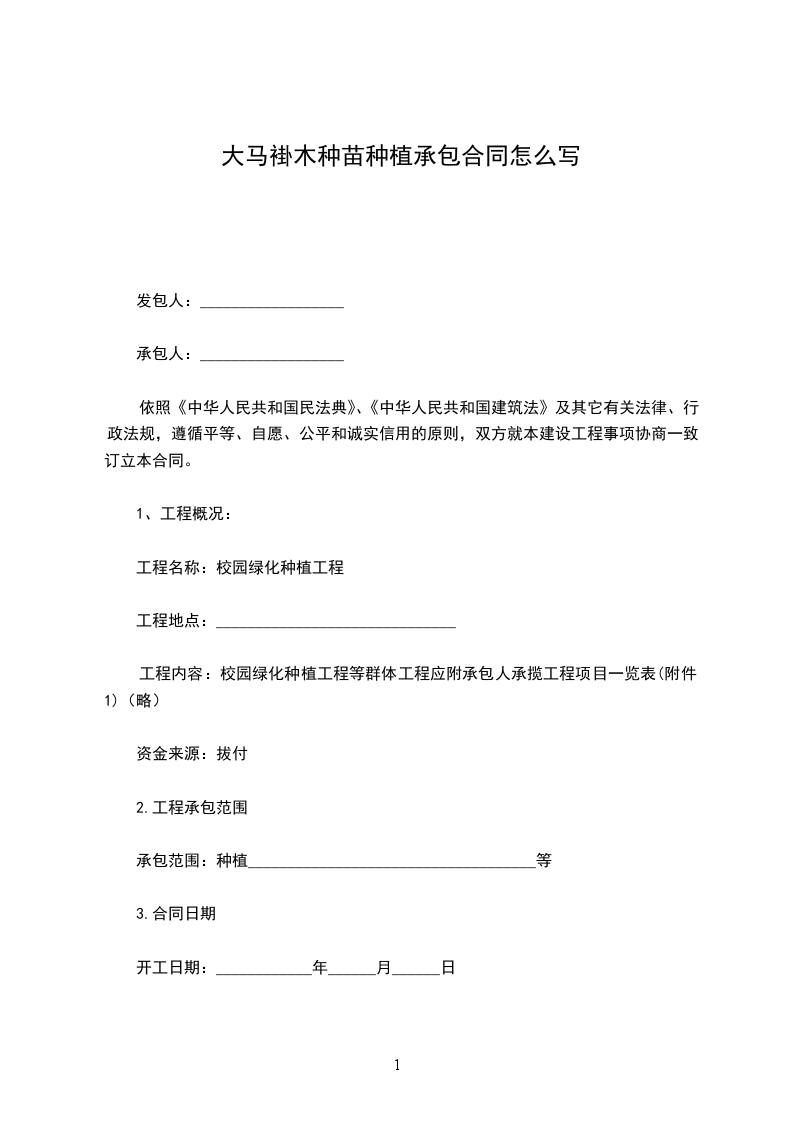 马褂木种苗种植承包合同怎么写