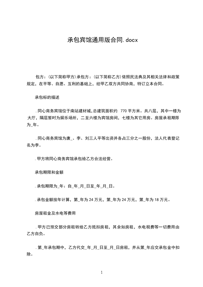 .甲方将同心商务宾馆承包给乙方合法经营。
