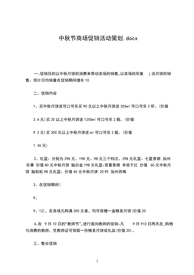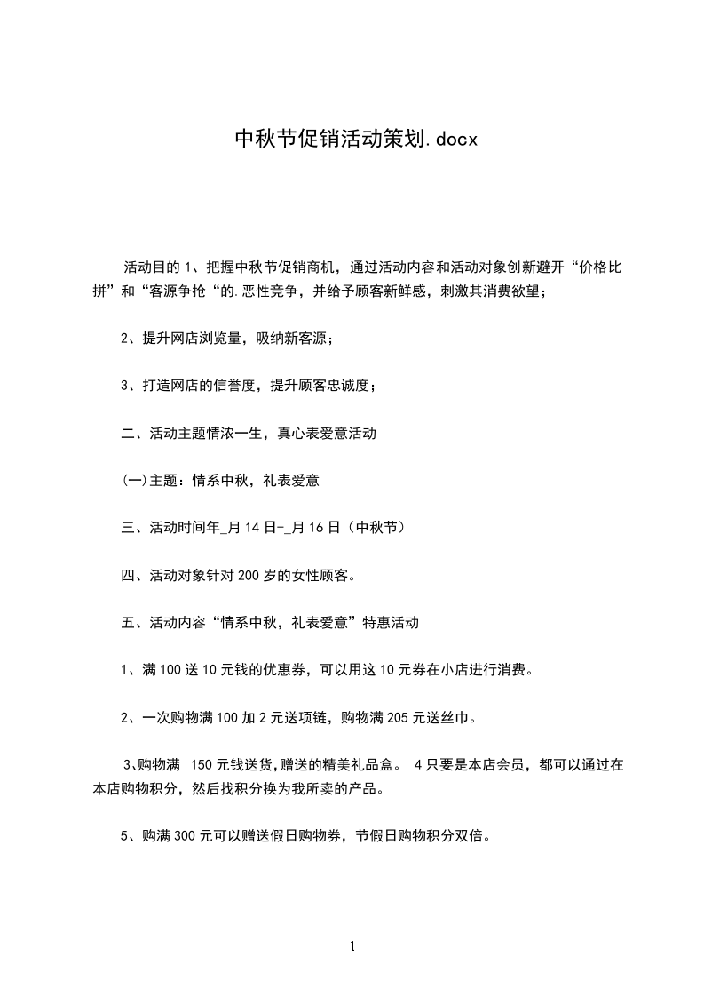 促销目的1、利用中秋小长假的机会,提升我司终端零售量,加大分销力度;