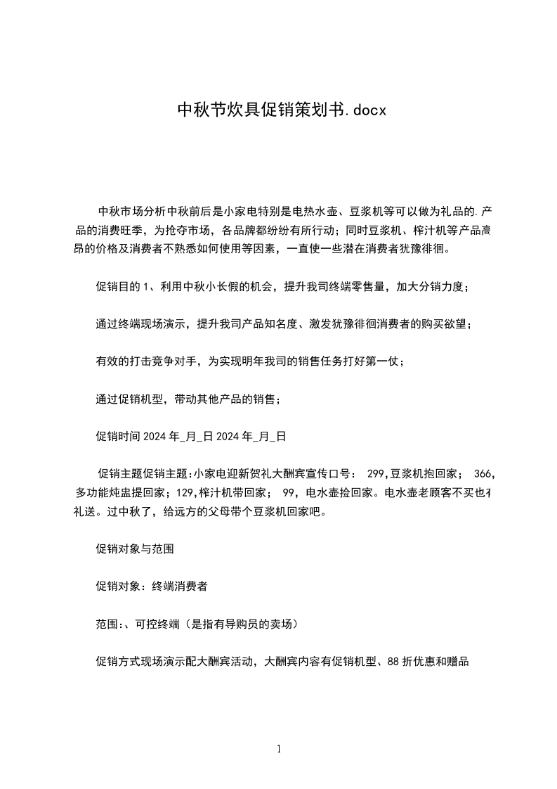 中秋市场分析中秋前后是小家电特别是电热水壶、豆浆机等可以做为礼品的.产品的消费旺季,为抢夺市场,各品牌都纷纷有所行动;同时豆浆机、榨汁机等产品高昂的价格及消费者不熟悉如何使用等因素,一直使一些潜在消费者犹豫徘徊。