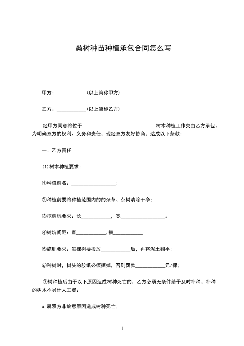 经甲方同意将位于______________________________树木种植工作交由乙方承包。为明确双方的权利、义务和责任,现经双方友好协商,达成以下条款: