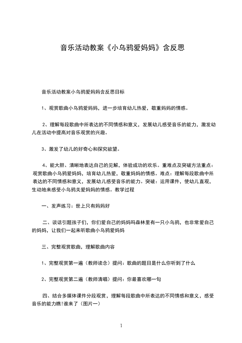 音乐活动教案小乌鸦爱妈妈含反思目标