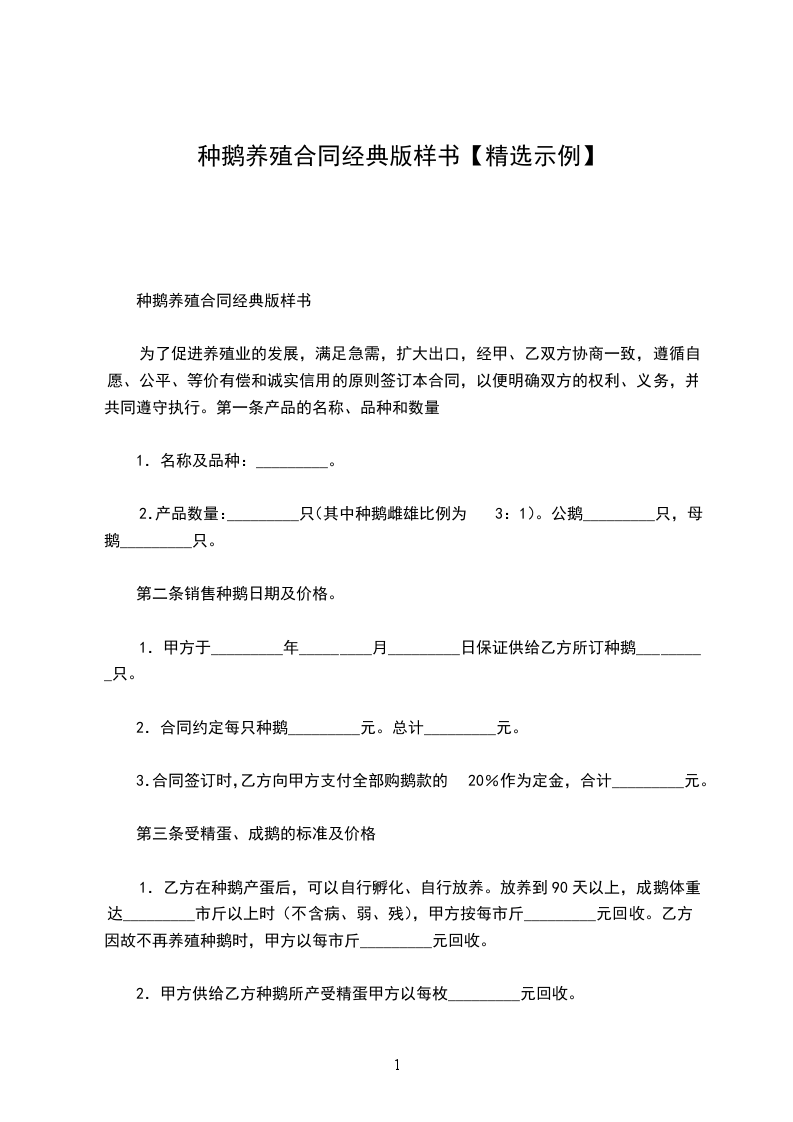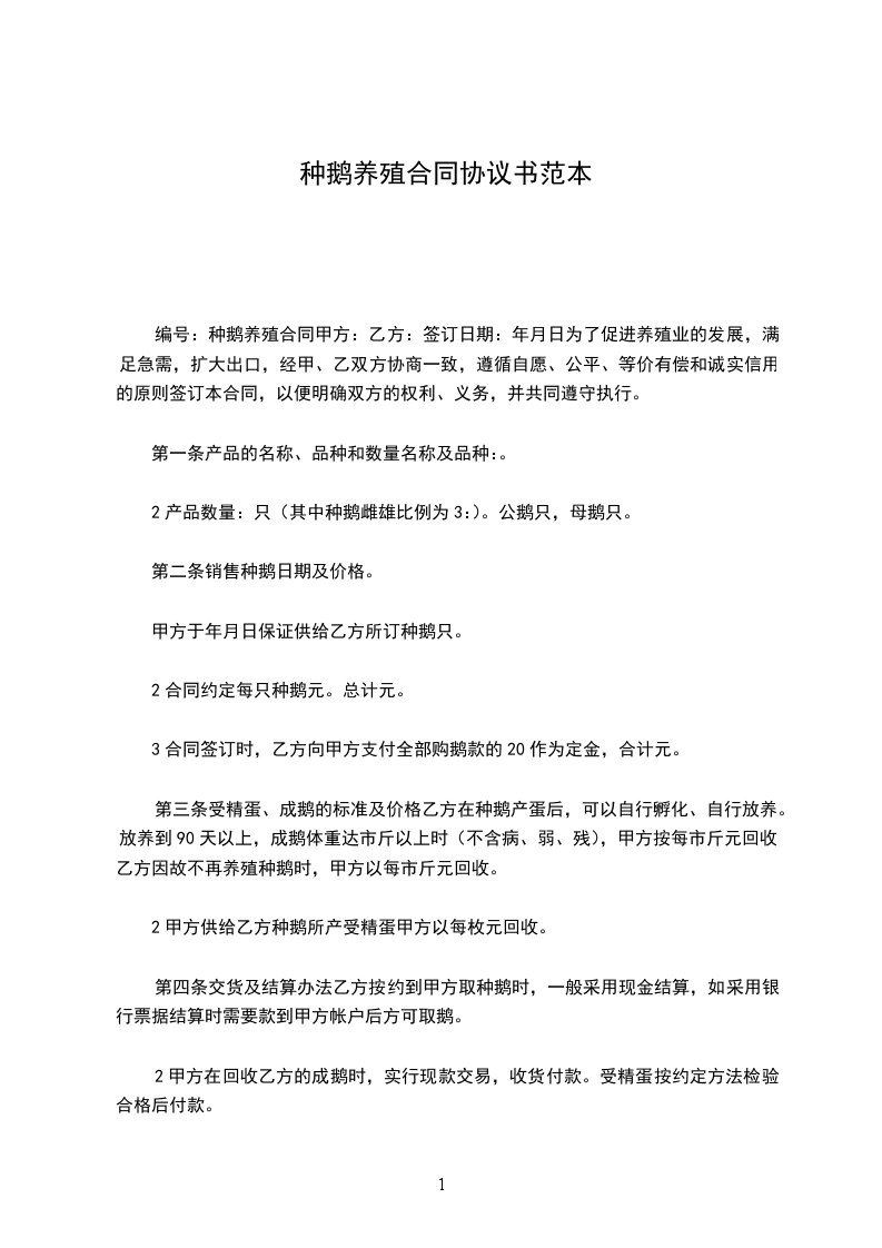 .甲方于_年_月_日保证供给乙方所订种鹅_只。