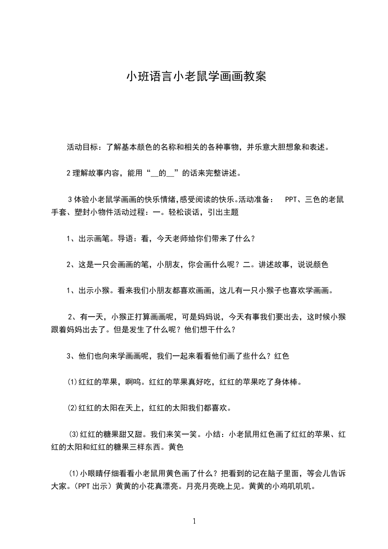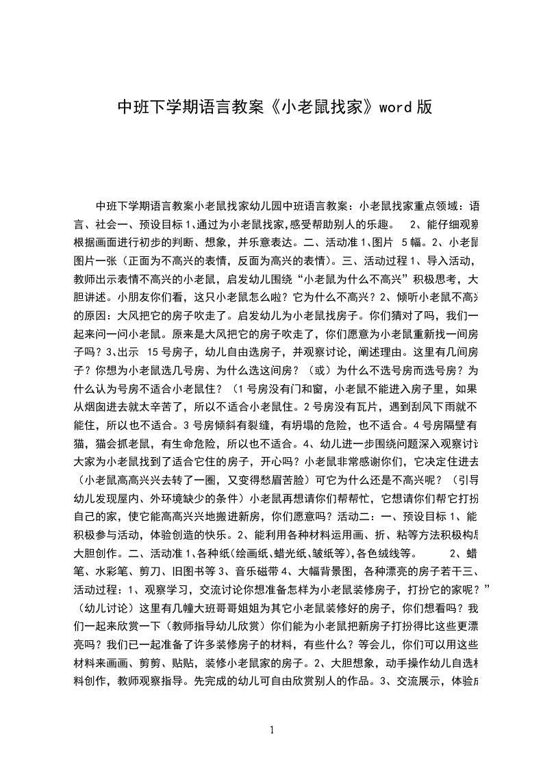 (1)教师:宝宝们大老鼠有没有找到小老鼠啊(找到了)这个故事有一个好听的名字呢,就是大老鼠找小老鼠,(请两名幼儿说说)