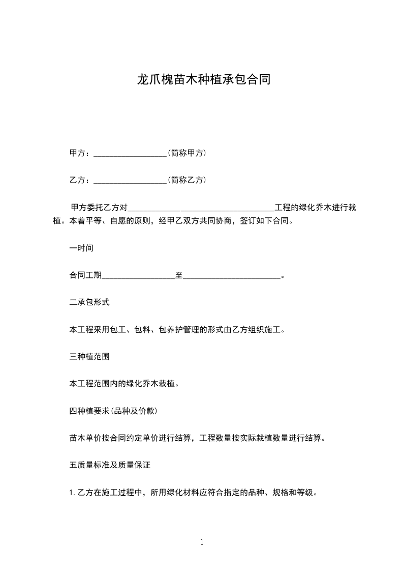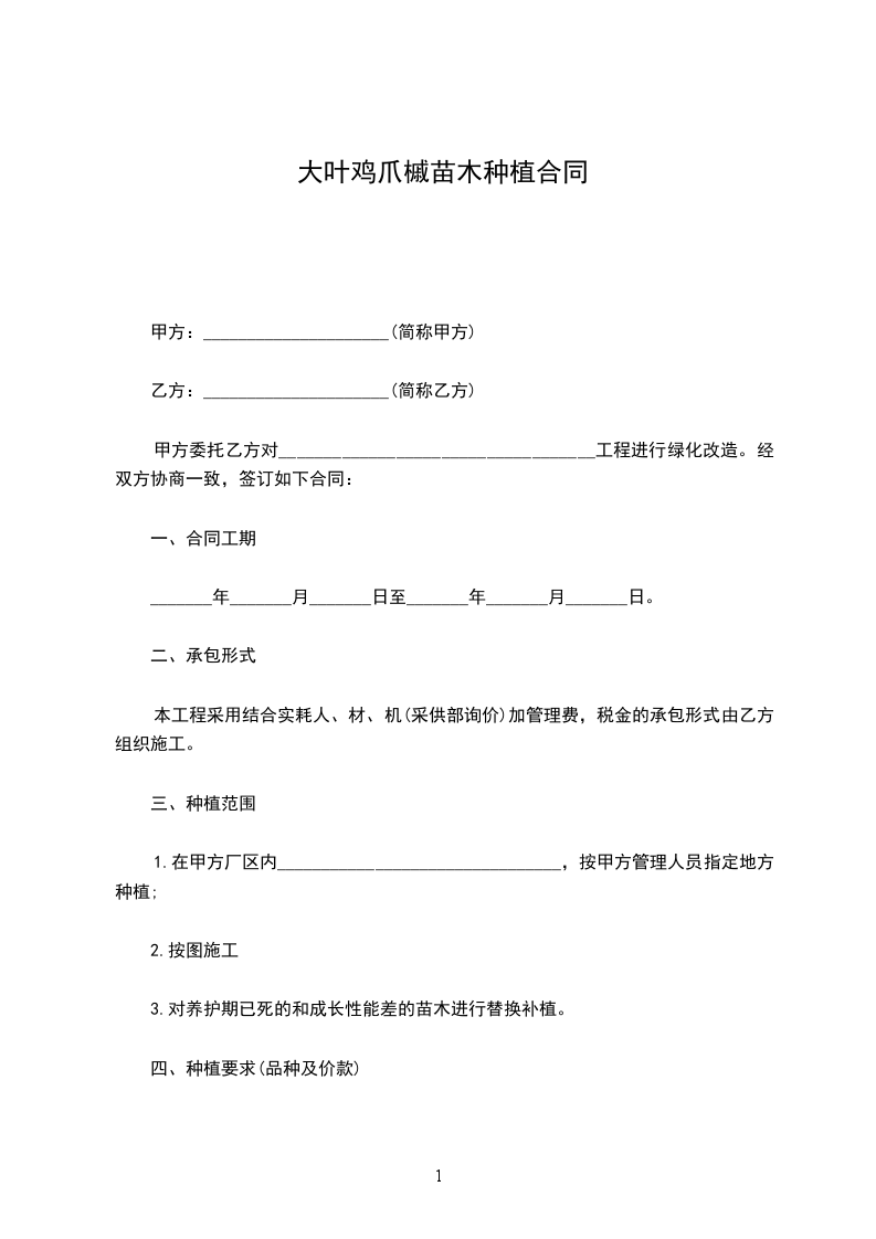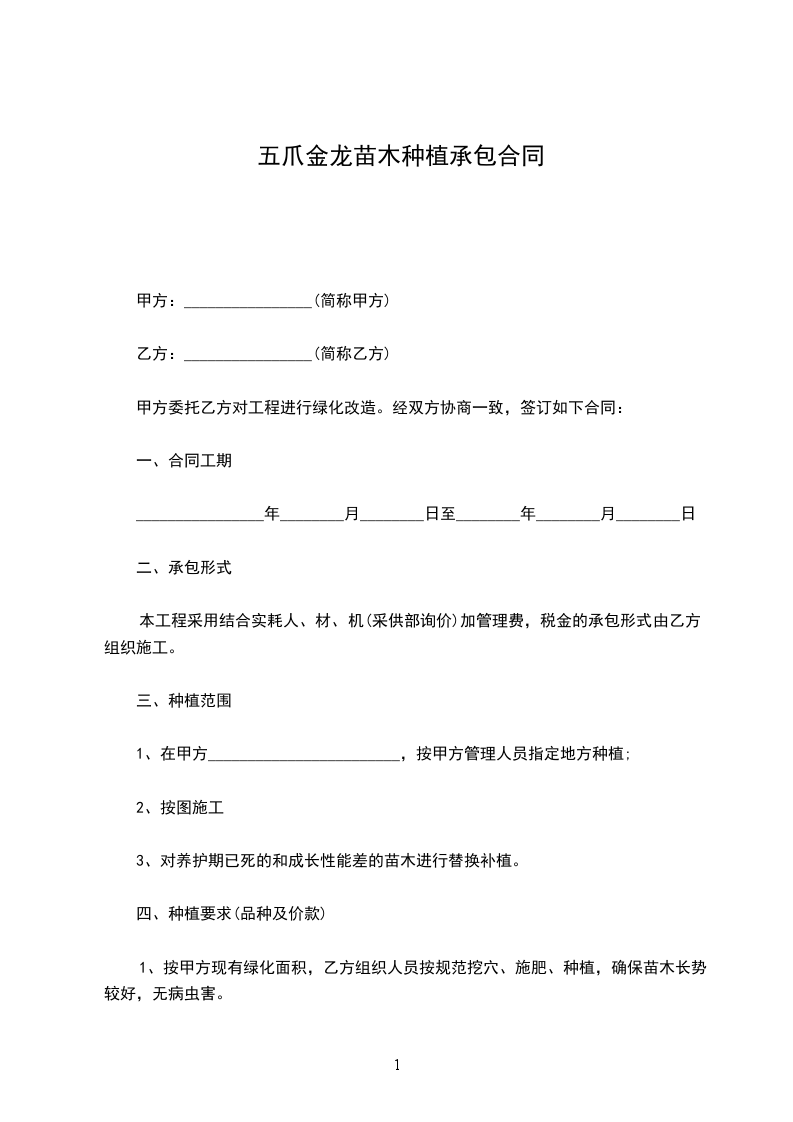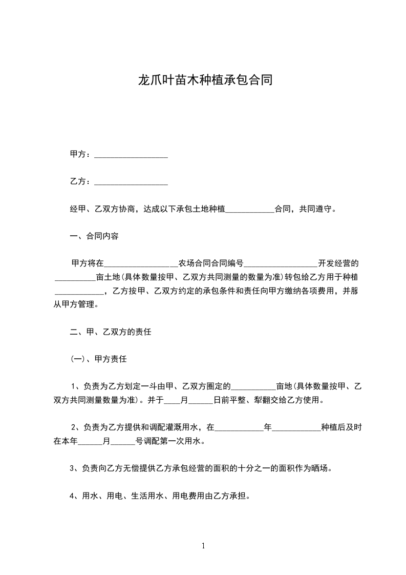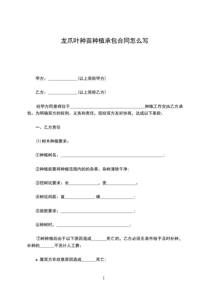 龙爪叶种苗种植承包合同怎么写