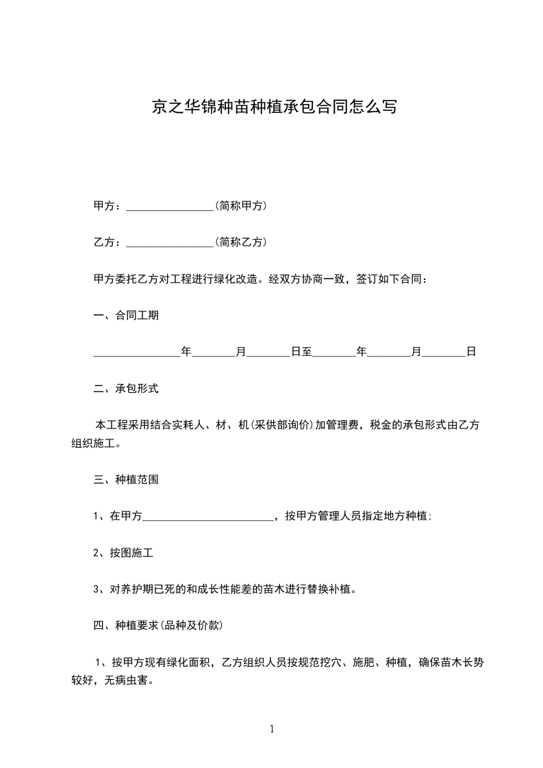 四、种植要求(品种及价款)