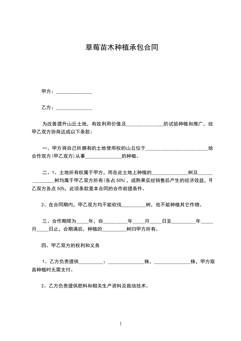 经甲方同意将位于______________________________树木种植工作交由乙方承包。为明确双方的权利、义务和责任,现经双方友好协商,达成以下条款: