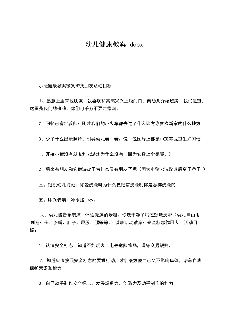 六、幼儿随音乐表演,体验洗澡的乐趣。你洗干净了吗还想洗洗哪(幼儿自由地创遍:头、胳膊、肚子、屁股、腿等等。)健康活动教案:安全标志作用大、活动目标: