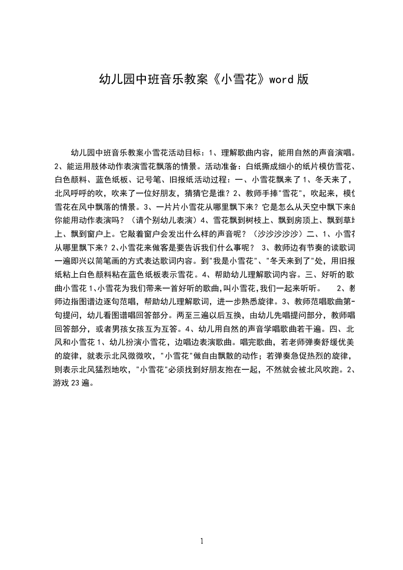2、请小朋友用自己话的描述一下雪花飘舞的的样子。活动过程:一、在小雪花乐曲的伴奏下,做雪花飘舞动作引起幼儿兴趣,引出课题。