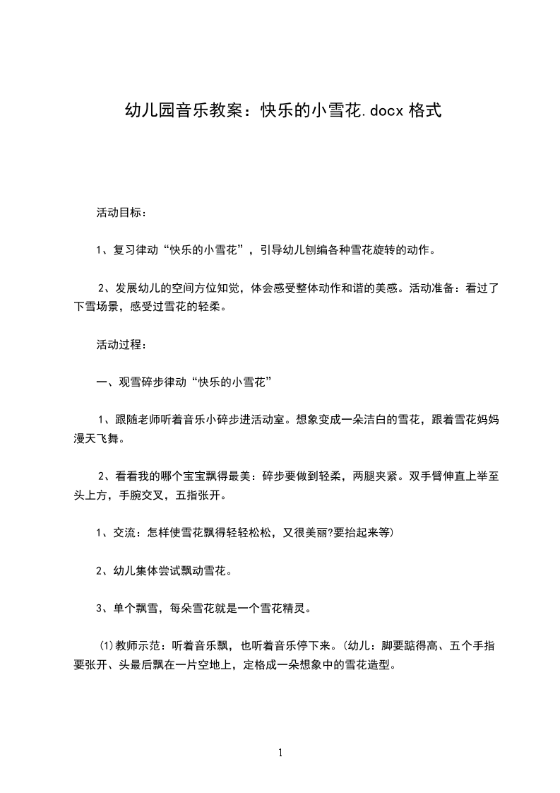 2、创编各种不同的小雪花飞舞的动作,表现乐曲的强弱规律。教学重点、难点:1、感受和表现歌曲的拍节奏。