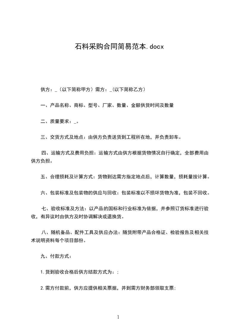 供方:_(以下简称甲方)需方:_(以下简称乙方)