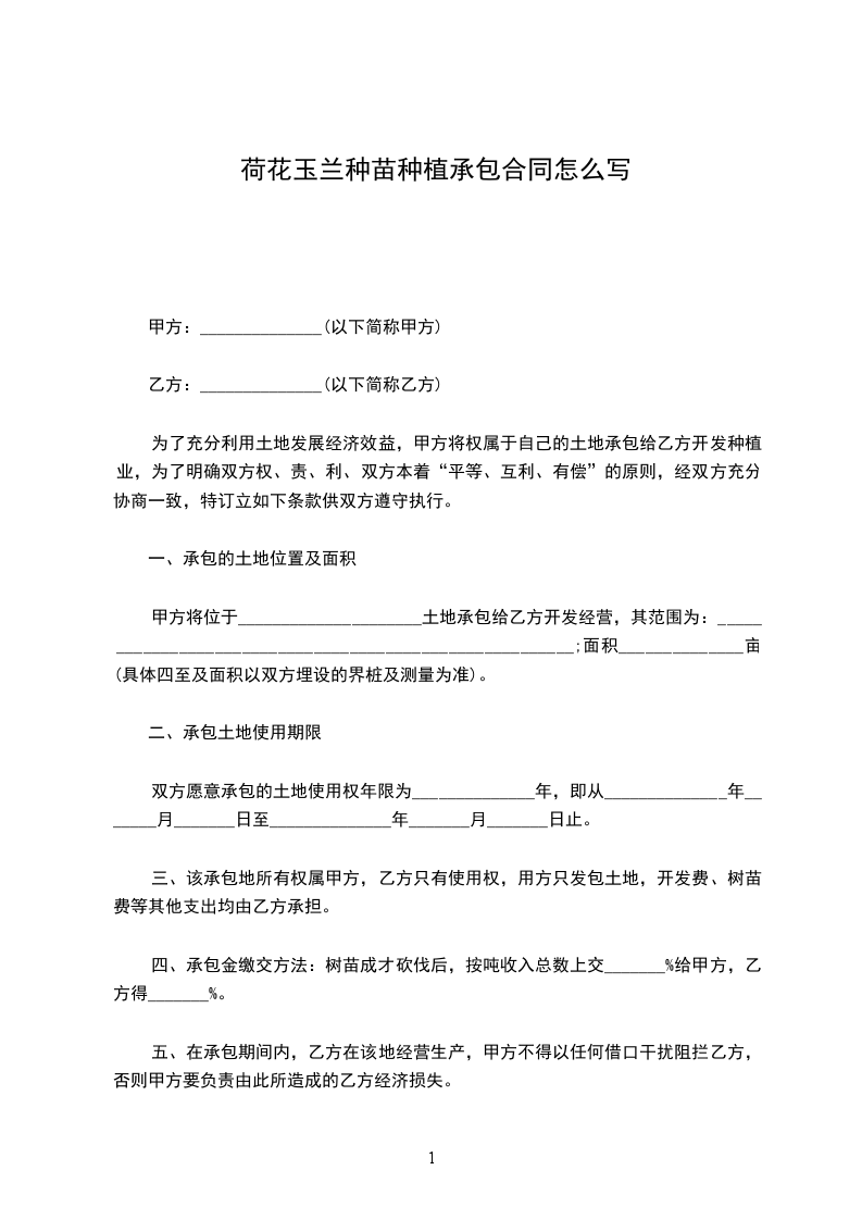 为了充分利用土地发展经济效益,甲方将权属于自己的土地承包给乙方开发种植业,为了明确双方权、责、利、双方本着“平等、互利、有偿”的原则,经双方充分协商一致,特订立如下条款供双方遵守执行。