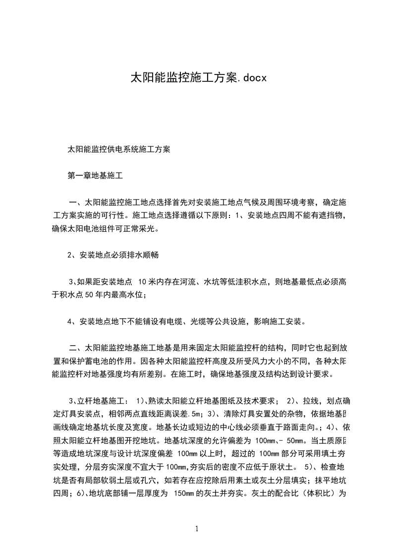 一、太阳能监控施工地点选择首先对安装施工地点气候及周围环境考察,确定施工方案实施的可行性。施工地点选择遵循以下原则:1、安装地点四周不能有遮挡物,确保太阳电池组件可正常采光。