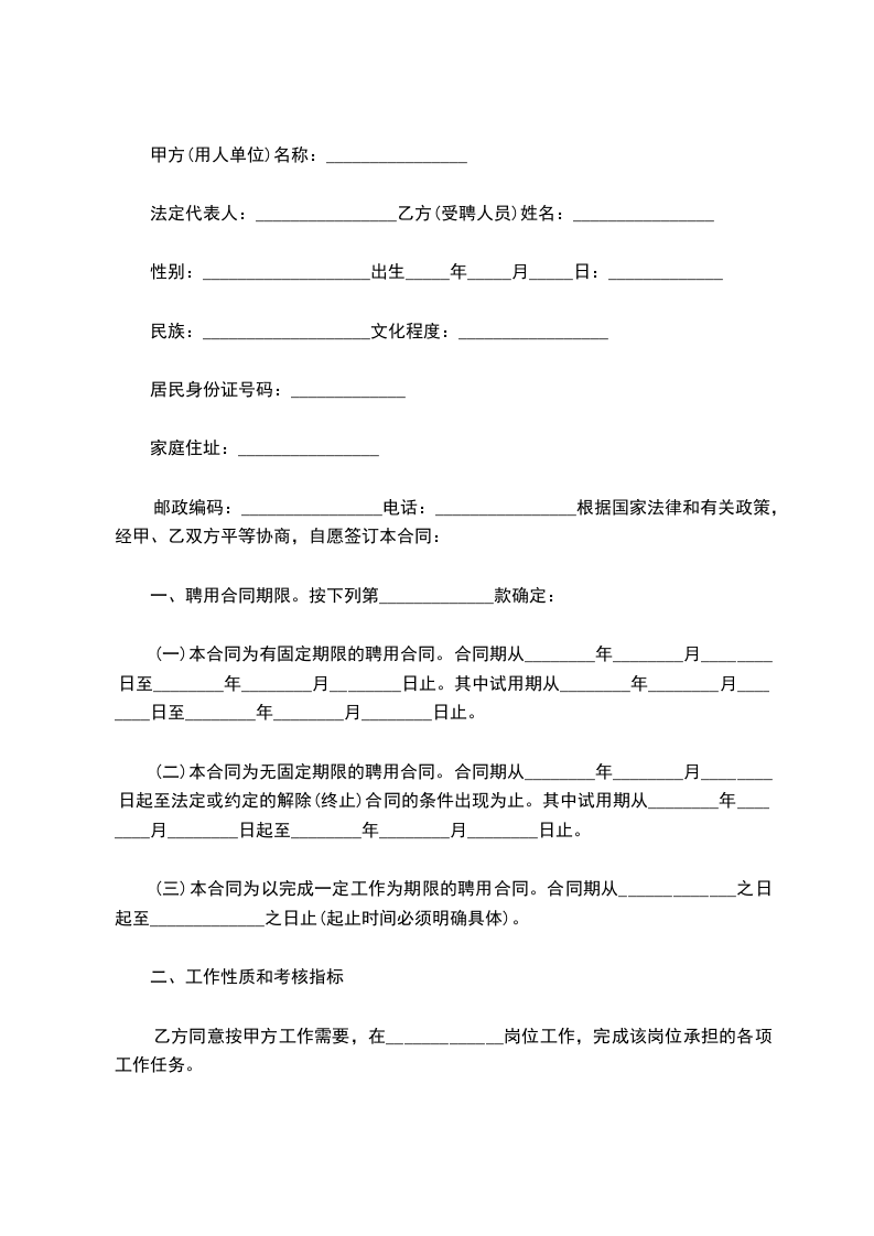 一、聘用合同期限。按下列第_____________款确定: