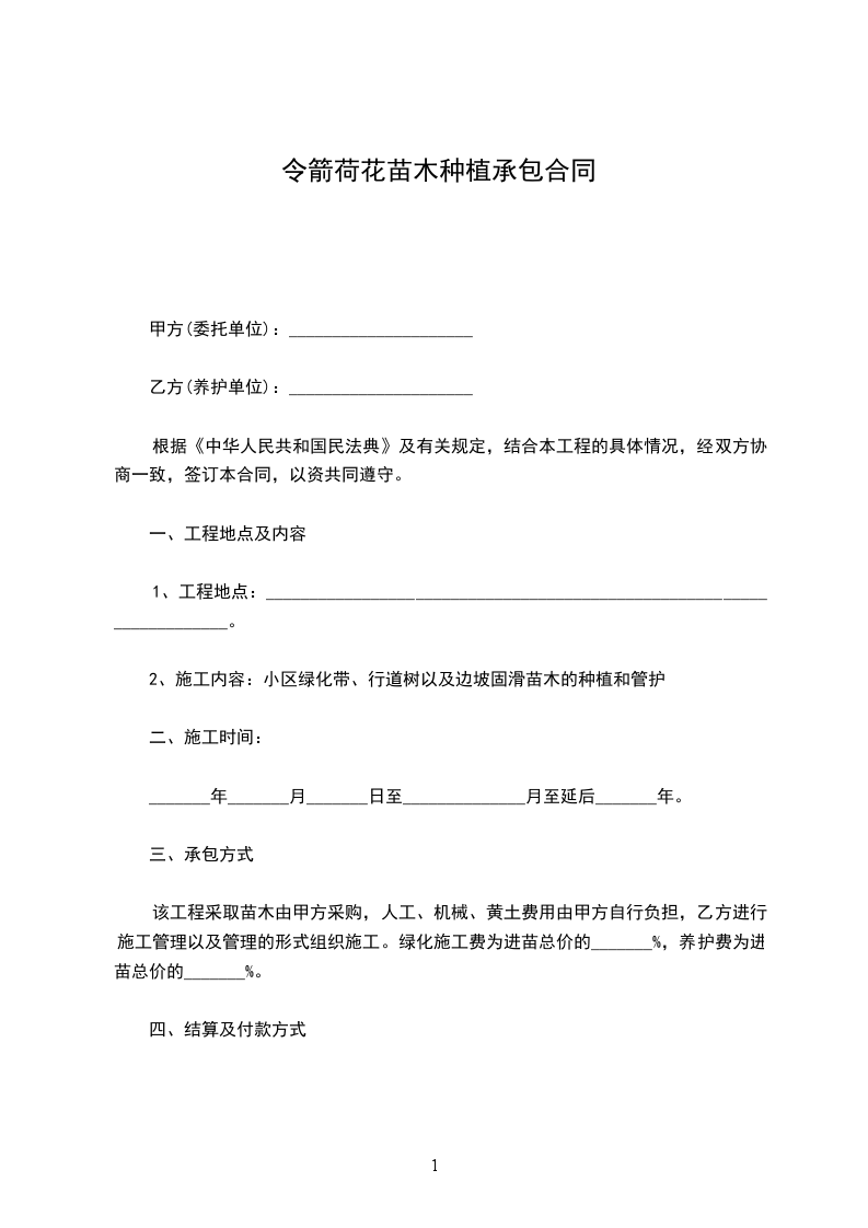 二、合同总价:合同总价为__________元,大写__________元整,最终以实际苗木定植数量为结算依据。