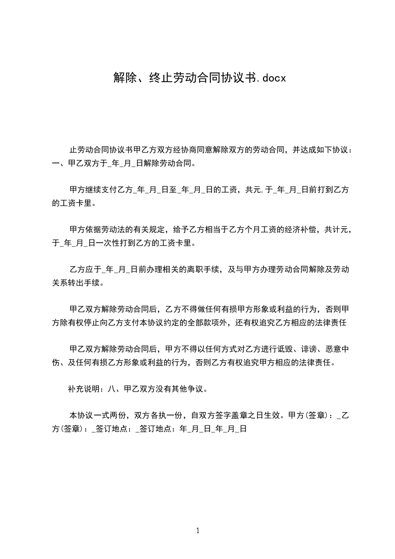 止劳动合同协议书甲乙方双方经协商同意解除双方的劳动合同,并达成如下协议:一、甲乙双方于_年_月_日解除劳动合同。