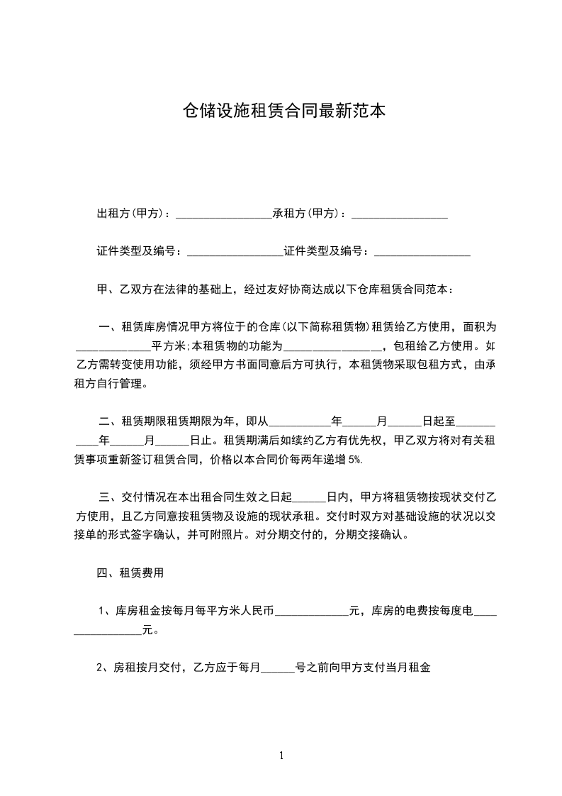 二、租赁期限租赁期限为年,即从___________年______月______日起至___________年______月______日止。租赁期满后如续约乙方有优先权,甲乙双方将对有关租赁事项重新签订租赁合同,价格以本合同价每两年递增5%.