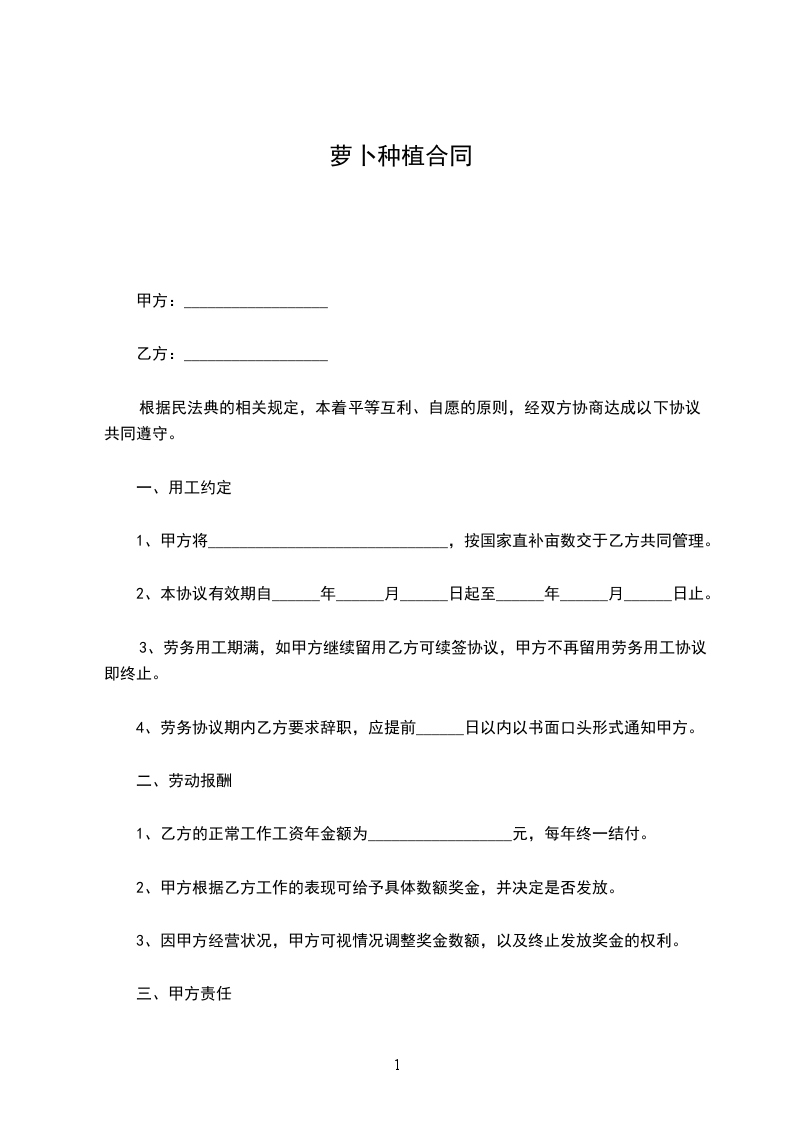 八、甲方协助乙方萝卜的种植,加工技术培训,指导.