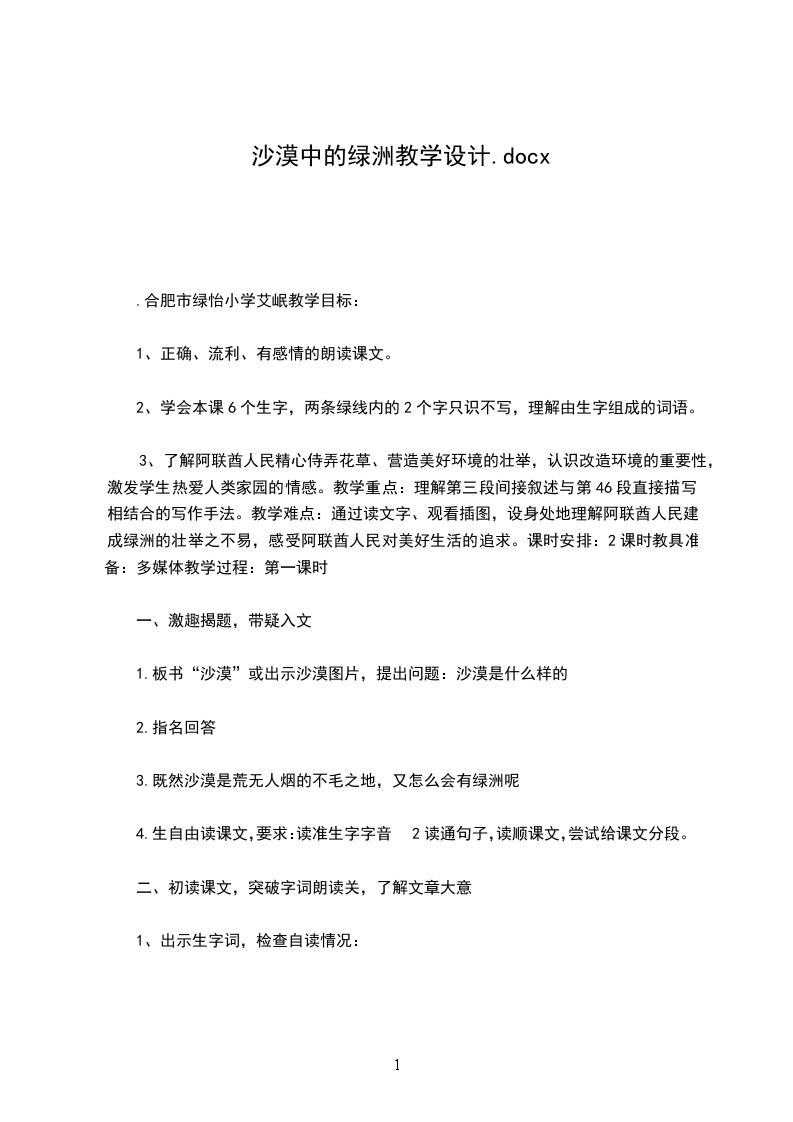 1、出示沙漠图片,感受沙漠风光,引出课题。