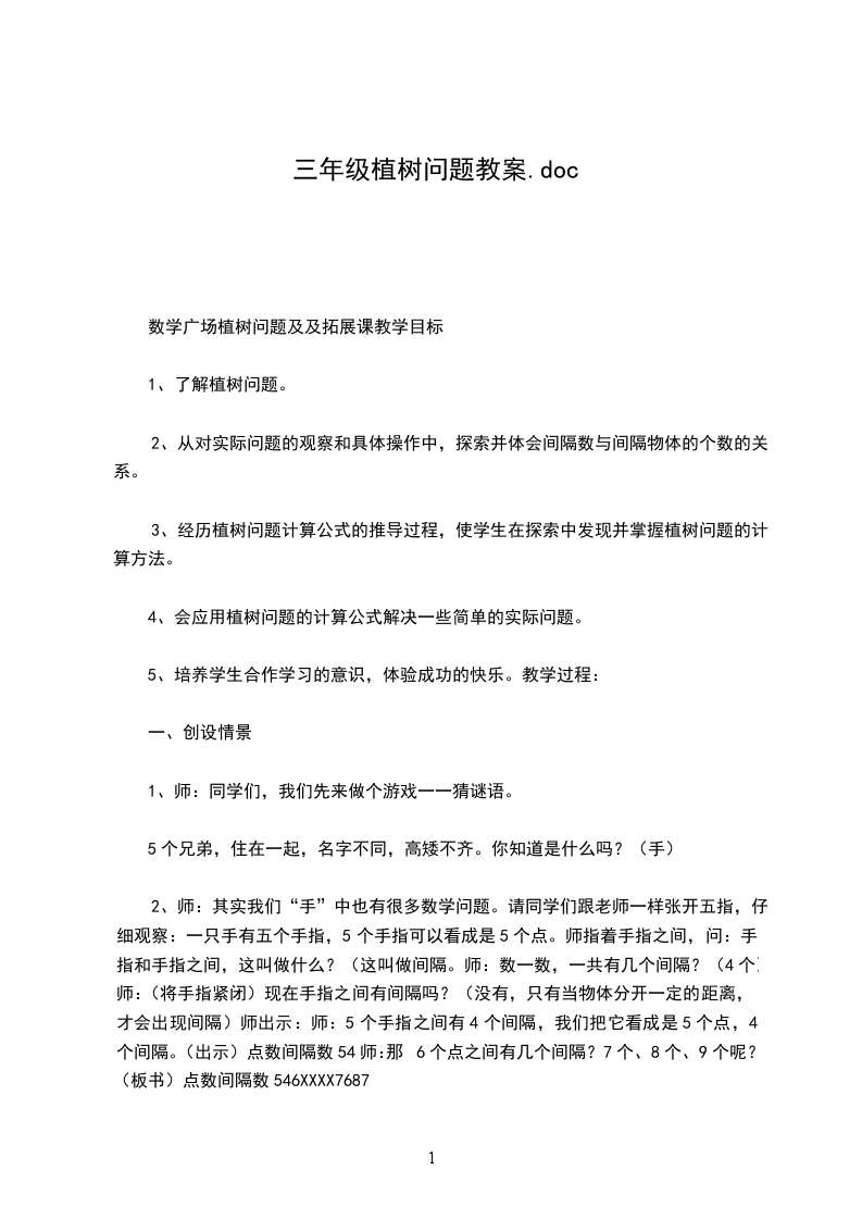 数学广场植树问题及及拓展课教学目标