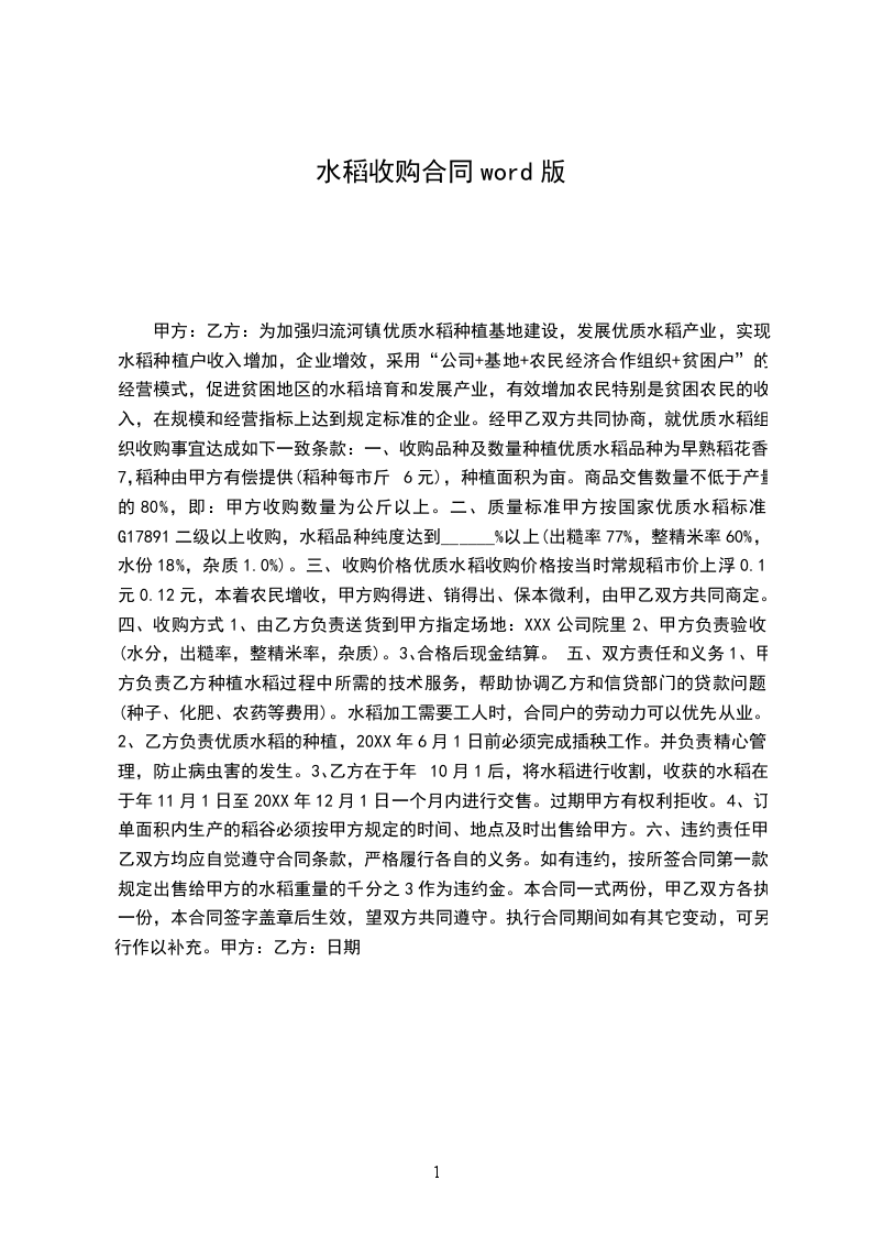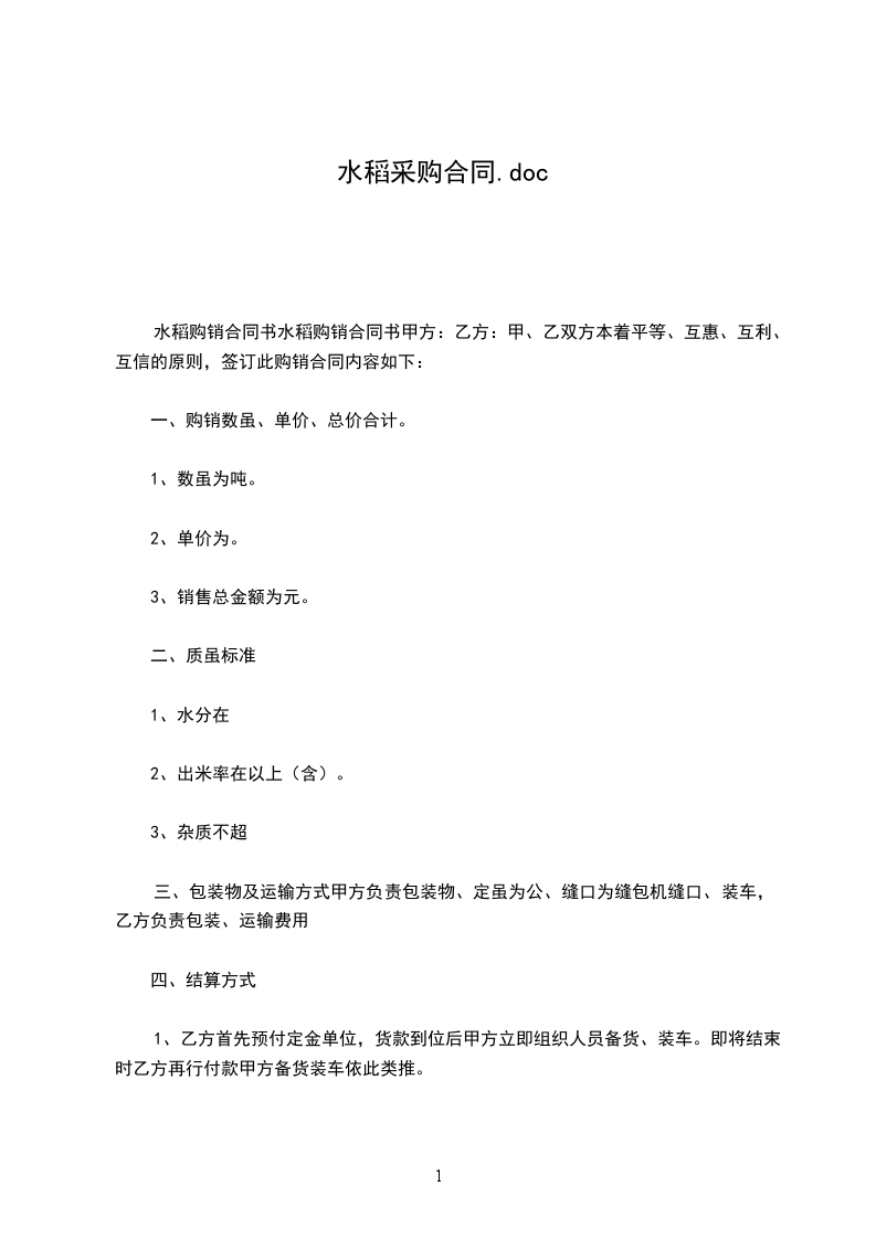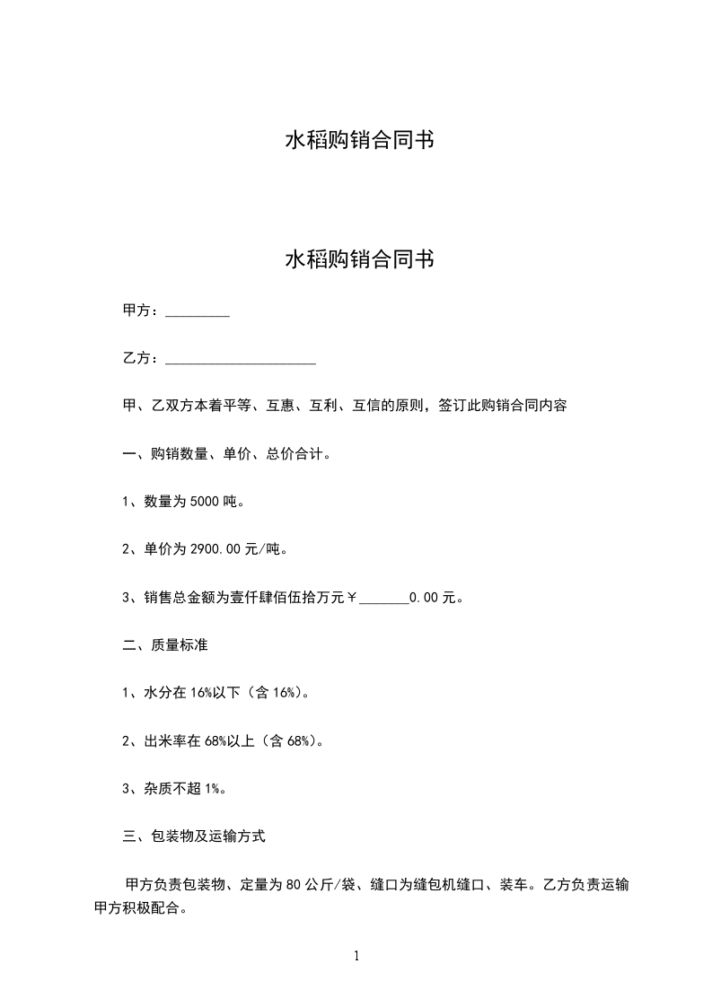 水稻购销合同书水稻购销合同书甲方:乙方:甲、乙双方本着平等、互惠、互利、互信的原则,签订此购销合同内容如下: