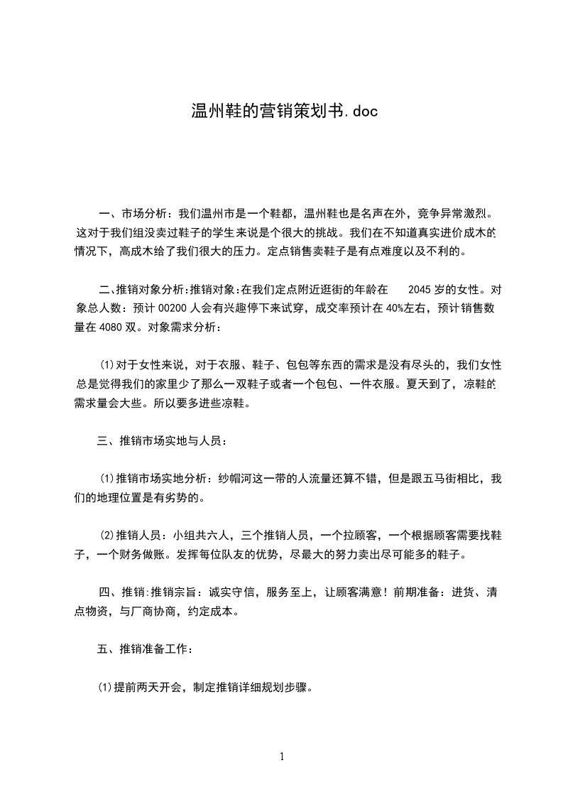 一、市场分析:我们温州市是一个鞋都,温州鞋也是名声在外,竞争异常激烈。这对于我们组没卖过鞋子的学生来说是个很大的挑战。我们在不知道真实进价成木的情况下,高成木给了我们很大的压力。定点销售卖鞋子是有点难度以及不利的。