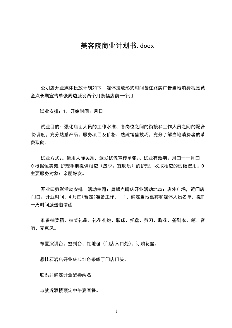 试业方式:。运用人际关系,派发试做宣传单张。、试业有效期:月曰一一月曰O根据恒美苑.护理手册提供相应(应季、宜肤质)的护理,收取相应的试做费用。O主要服务对象:亲朋好友。