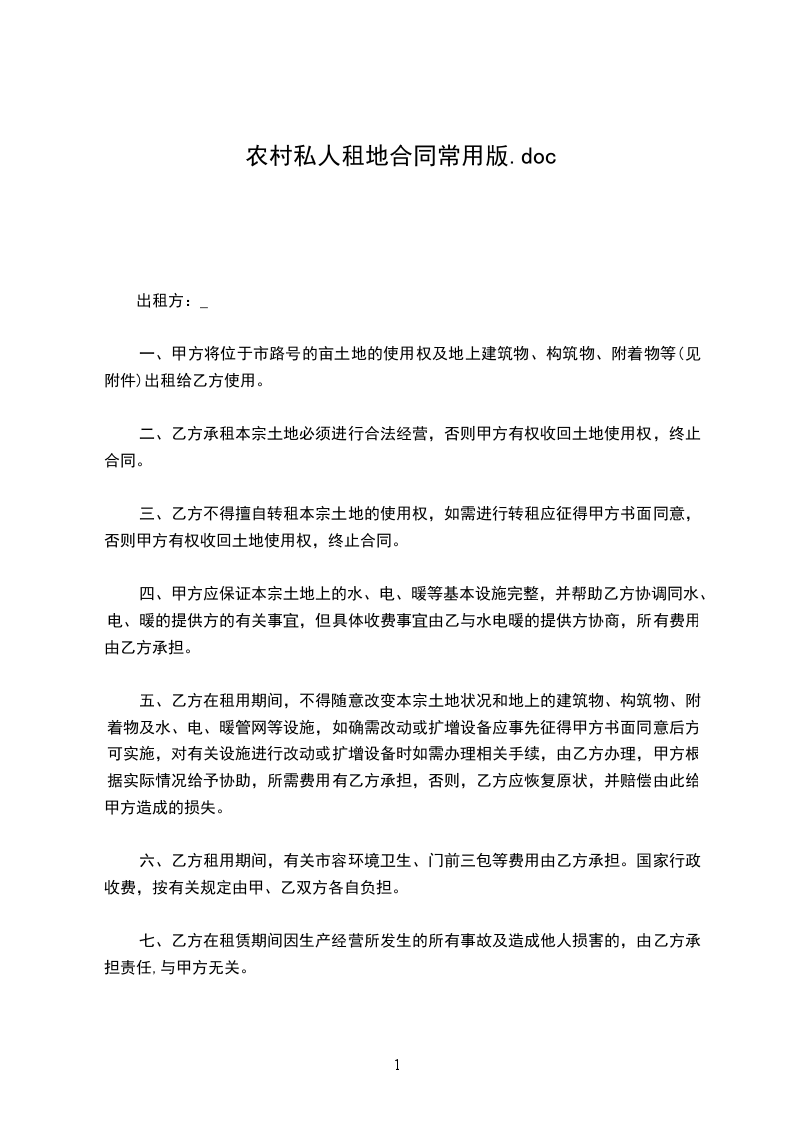 一、甲方将位于市路号的亩土地的使用权及地上建筑物、构筑物、附着物等(见附件)出租给乙方使用。