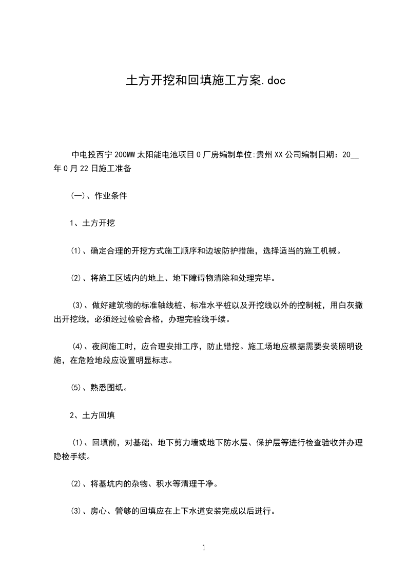 中电投西宁200MW太阳能电池项目0厂房编制单位:贵州XX公司编制日期:20__年0月22日施工准备