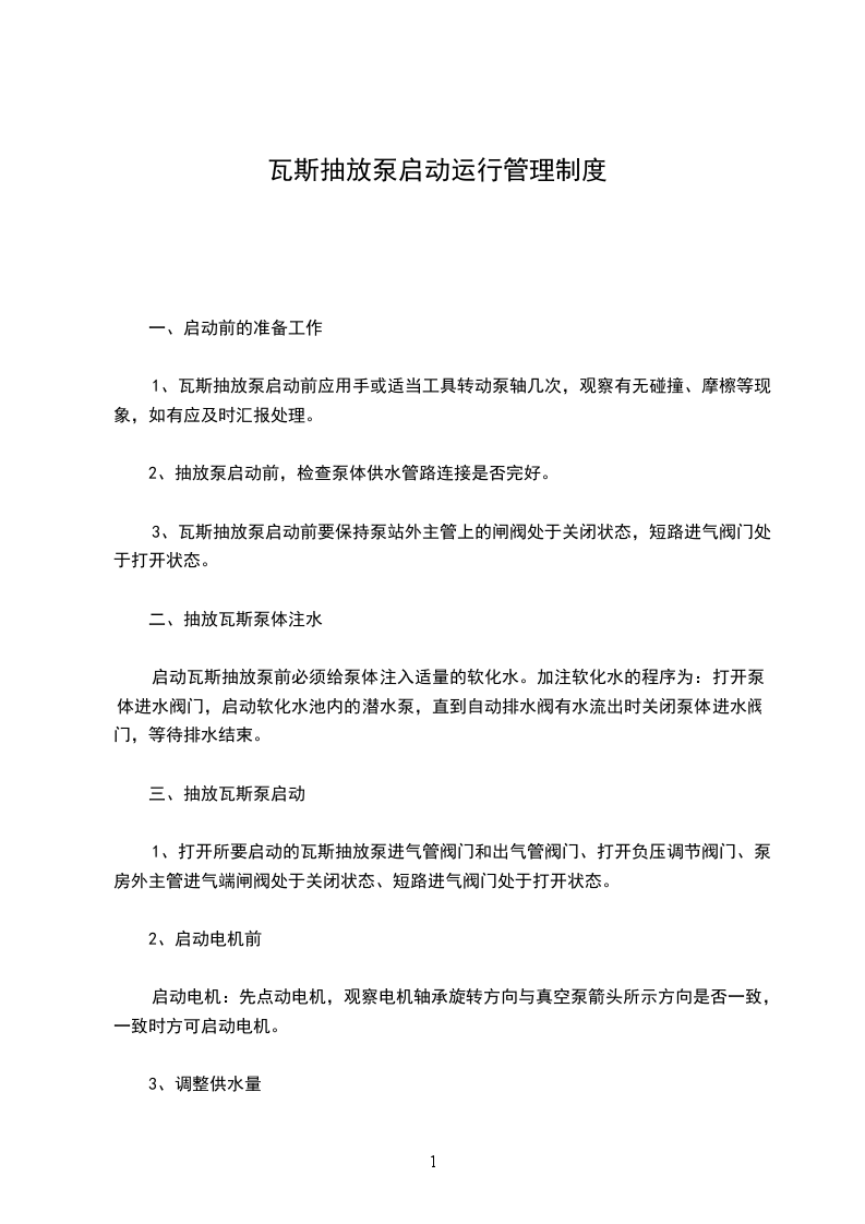 1、检查确定所有启动瓦斯泵各气门开关情况,做到按需正确开关。