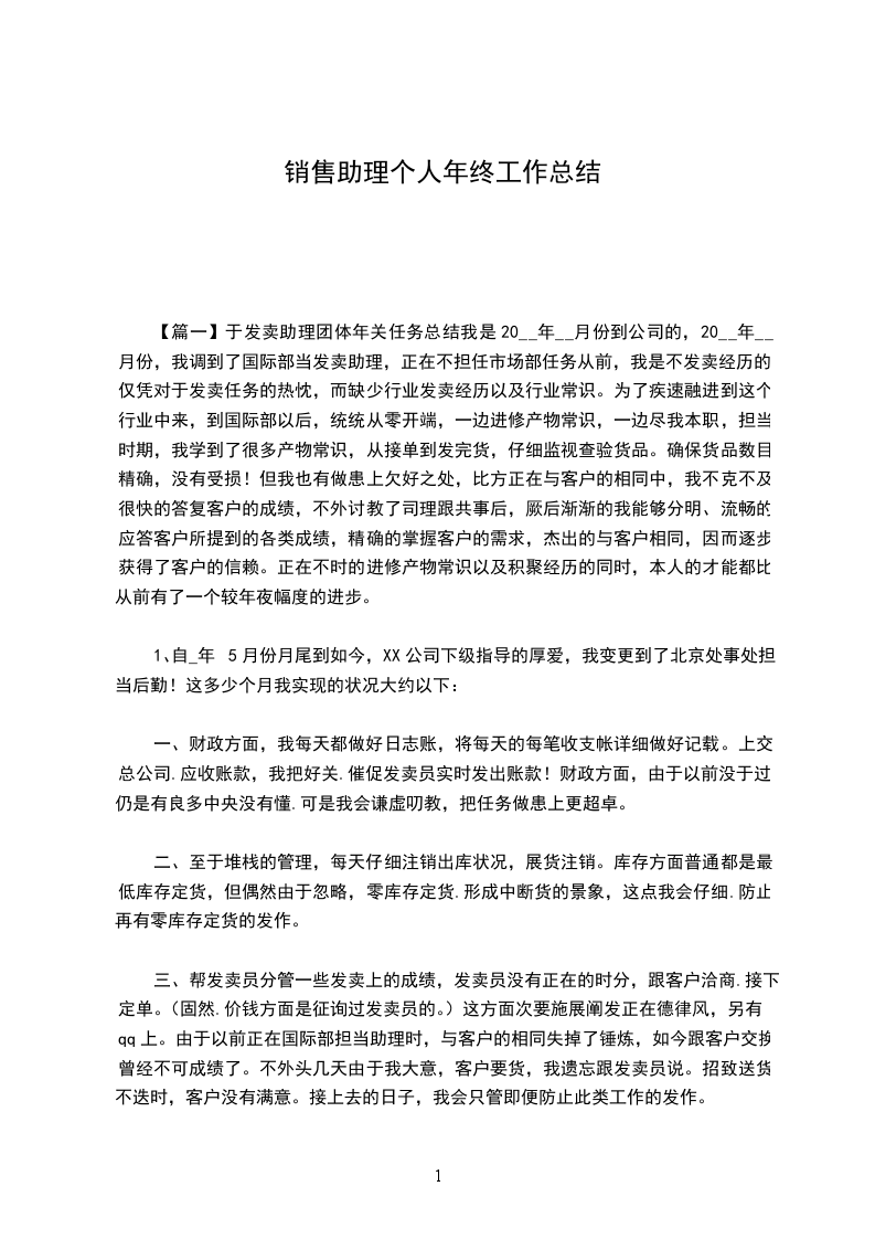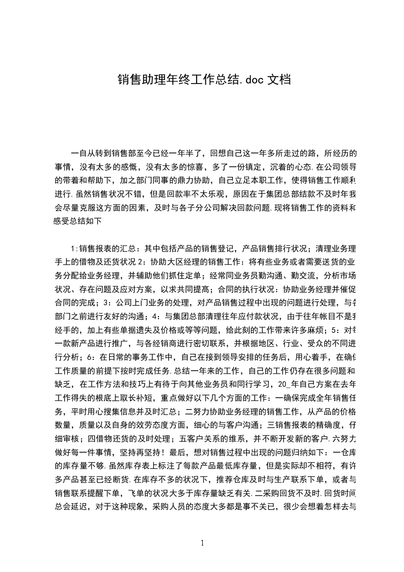 总结一年来的工作,自己的工作仍存在很多问题和不足,在工作方法和技巧上有待于向其他业务员和同行学习,__年自己计划在去年工作得失的基础上取长补短,详细内容请看下文销售助理年终个人总结。做好