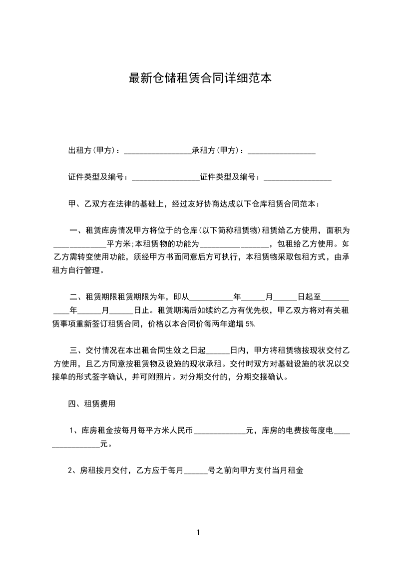 一、租赁库房情况甲方将位于的仓库(以下简称租赁物)租赁给乙方使用,面积为_____________平方米;本租赁物的功能为_________________,包租给乙方使用。如乙方需转变使用功能,须经甲方书面同意后方可执行,本租赁物采取包租方式,由承租方自行管理。