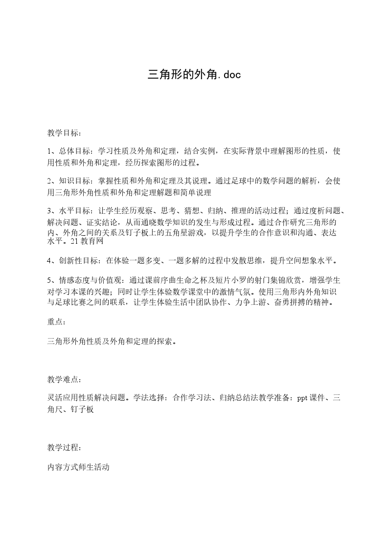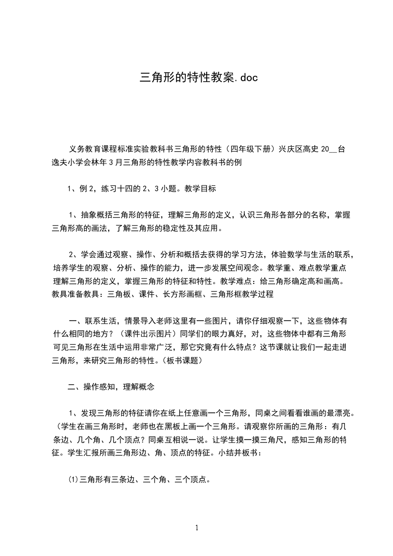 (1)认识三角形,了解三角形的意义,认识三角形的边、角、顶点,能用符号语言表示三角形。