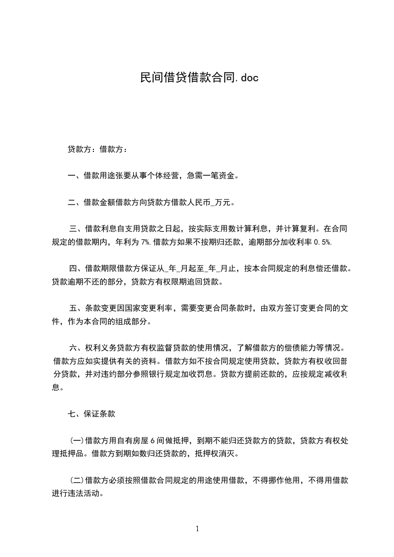 二、借贷期限为_年,自_年_月_日起至_年_月_日止。