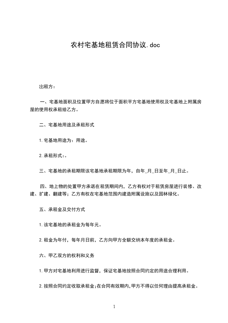 一、宅基地面积及位置甲方自愿将位于面积平方宅基地使用权及宅基地上附属房屋的使用权承租给乙方。