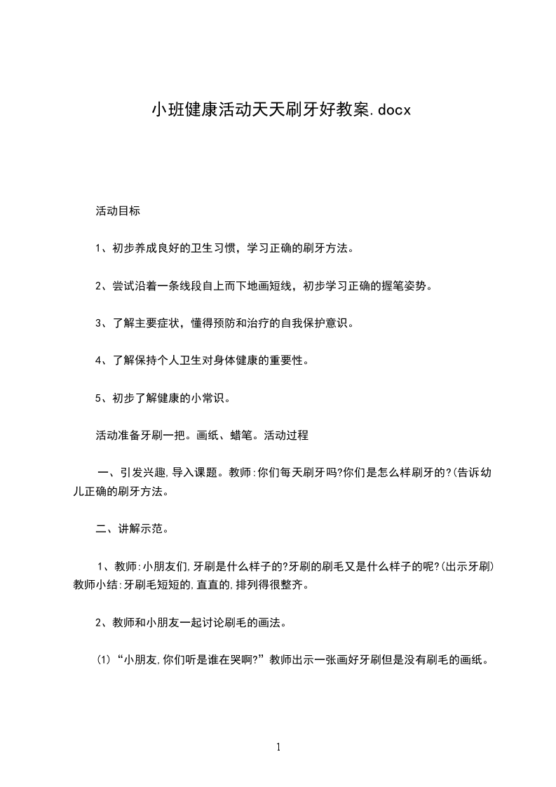 活动准备牙刷一把。画纸、蜡笔。活动过程