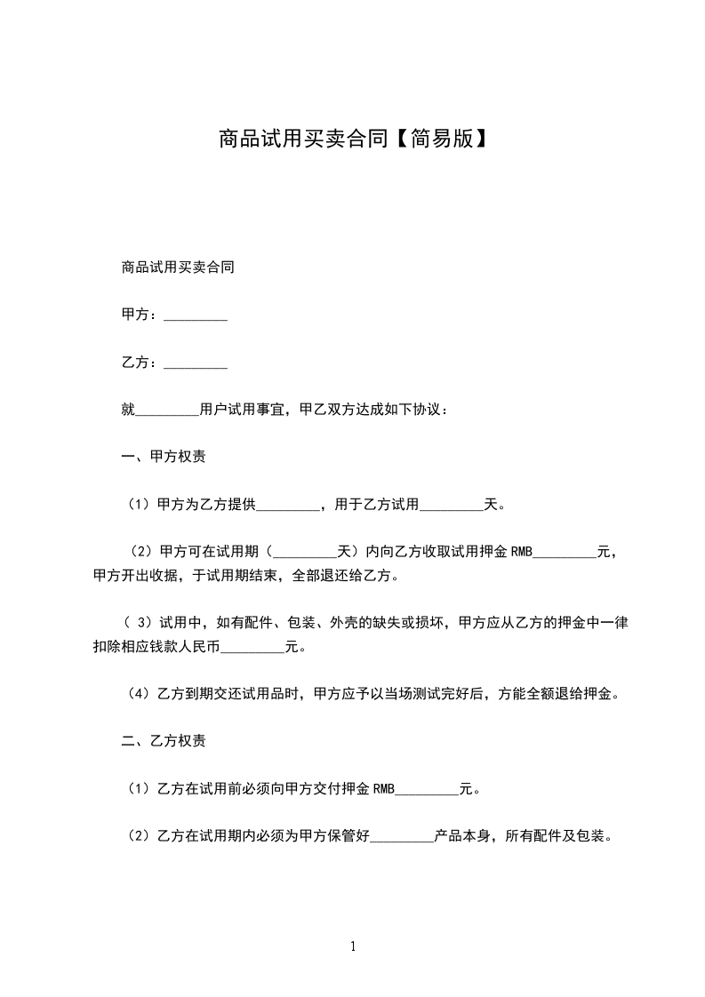 1.乙方在试用前必须向甲方交付押金RMB_元。