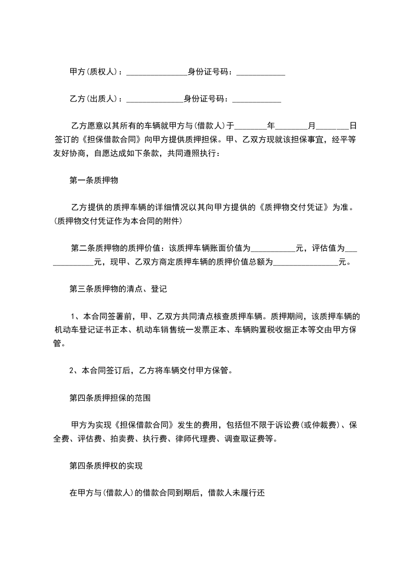 3、在抵押期间,乙方保证该车辆无任何交通事故及违章,并愿意承担相应的法律责任。