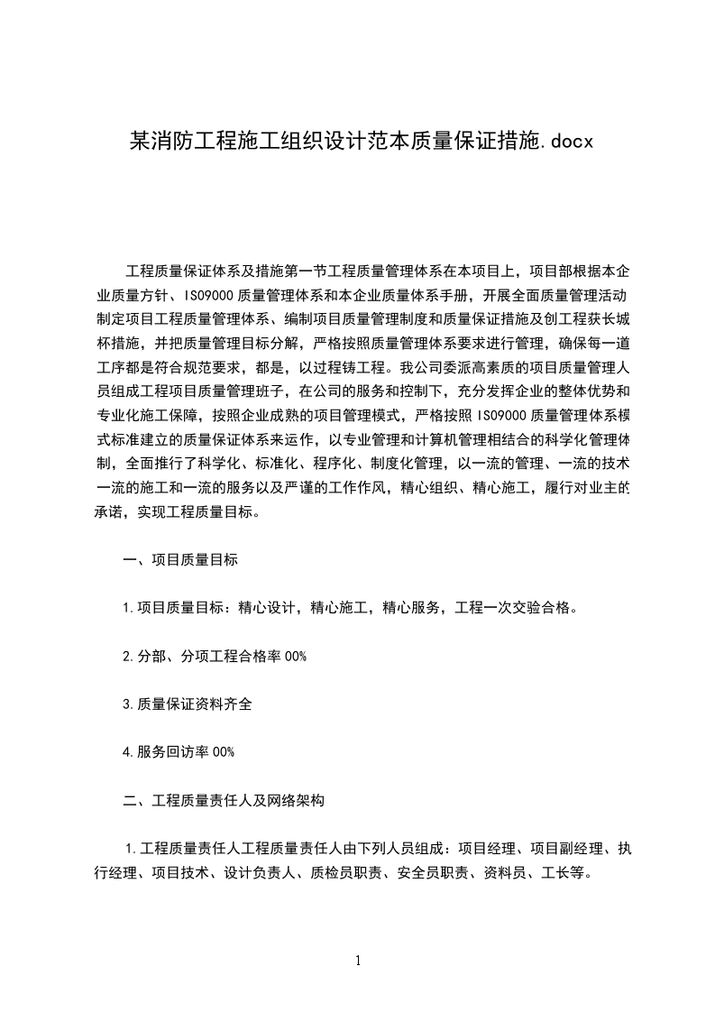 1.全面贯彻工程项目质量目标:精心设计,精心施工,精心服务,工程一次交验合格。