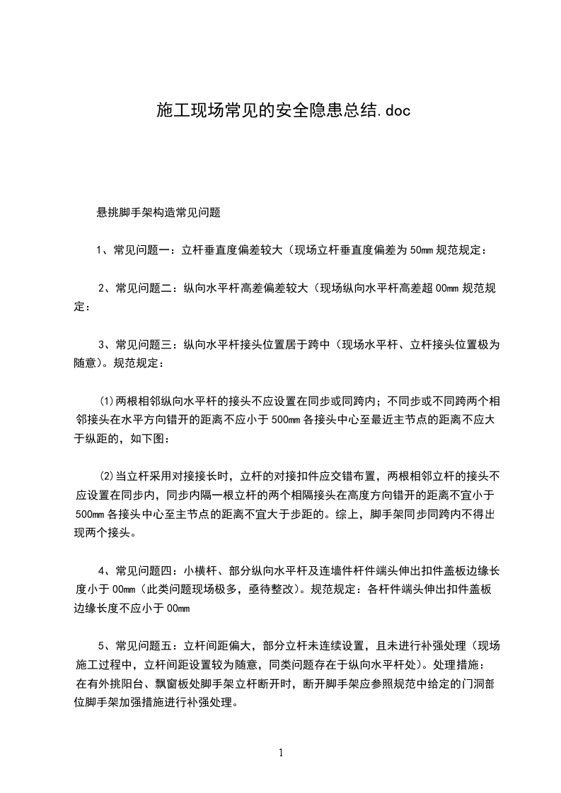 4、常见问题四:小横杆、部分纵向水平杆及连墙件杆件端头伸出扣件盖板边缘长度小于00mm(此类问题现场极多,亟待整改)。规范规定:各杆件端头伸出扣件盖板边缘长度不应小于00mm