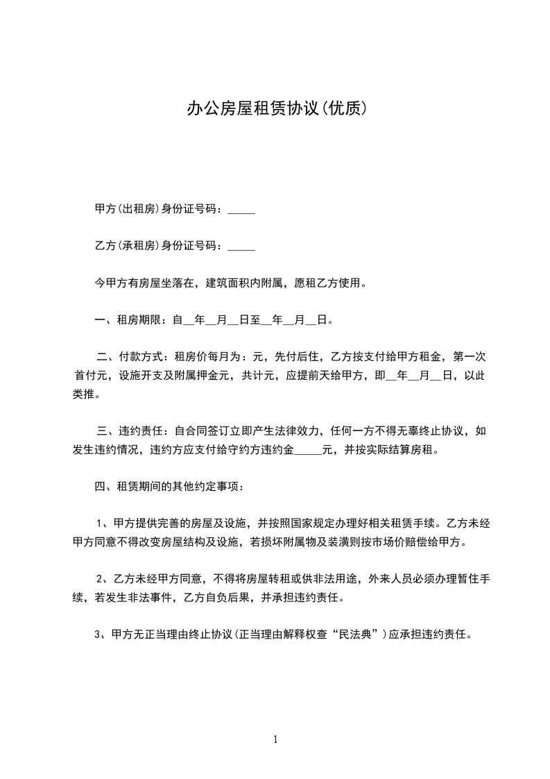.甲乙双方议定合同期内月租金_元,一次性付一季度租金_元。