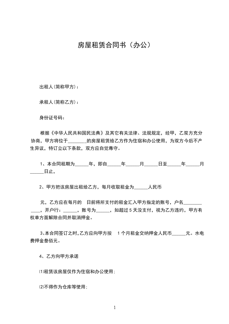 租方:以下简称甲方身份证:承租方:以下简称乙方身份证:根据中华人民共和国民法典及有关规定,为明确甲、乙双方的权利义务关系,经双方协商一致,签订本合同。