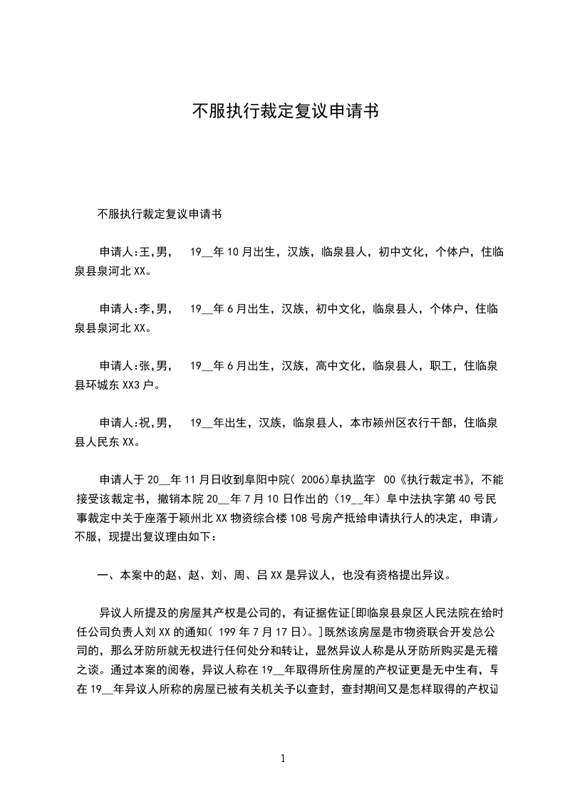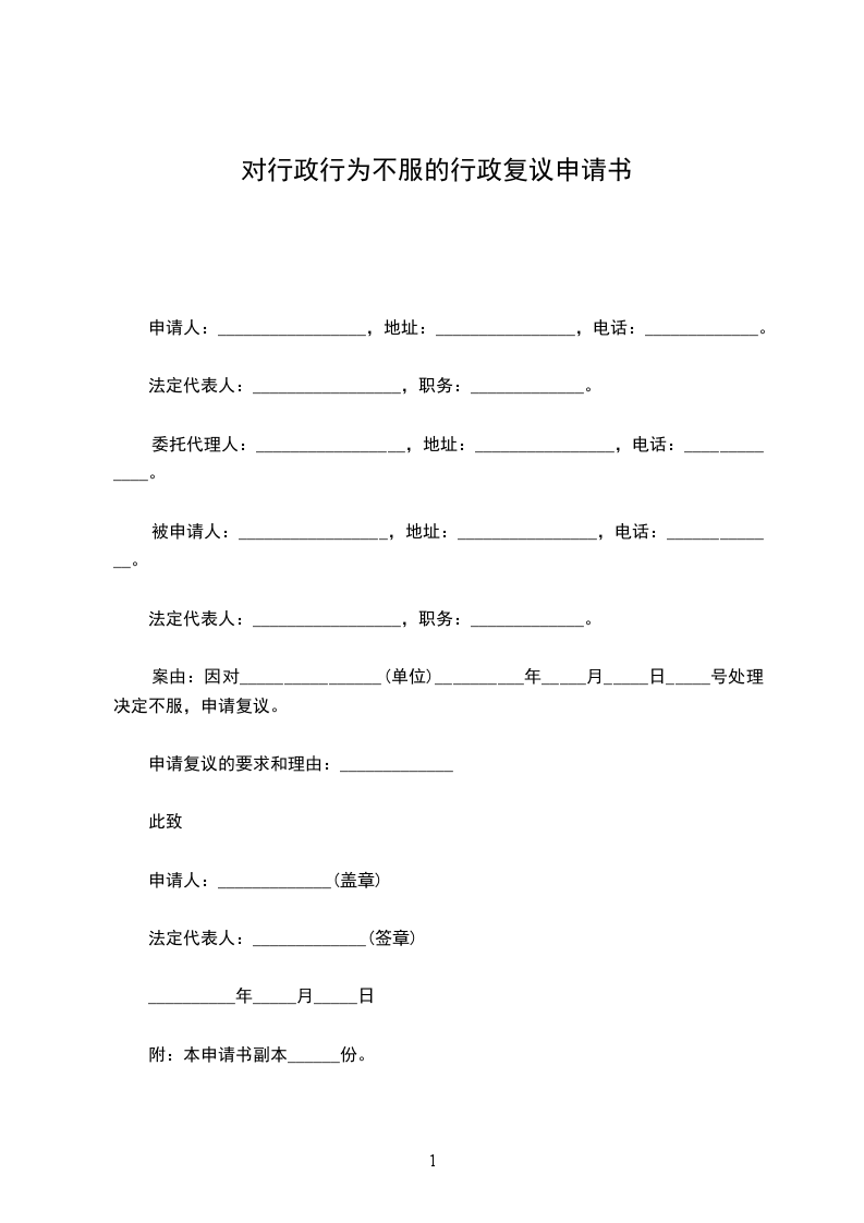 申请人因不服被申请人_________年_________月________日作出的_________________具体行政行为,向_________________机关提出复议申请,要求_________________。