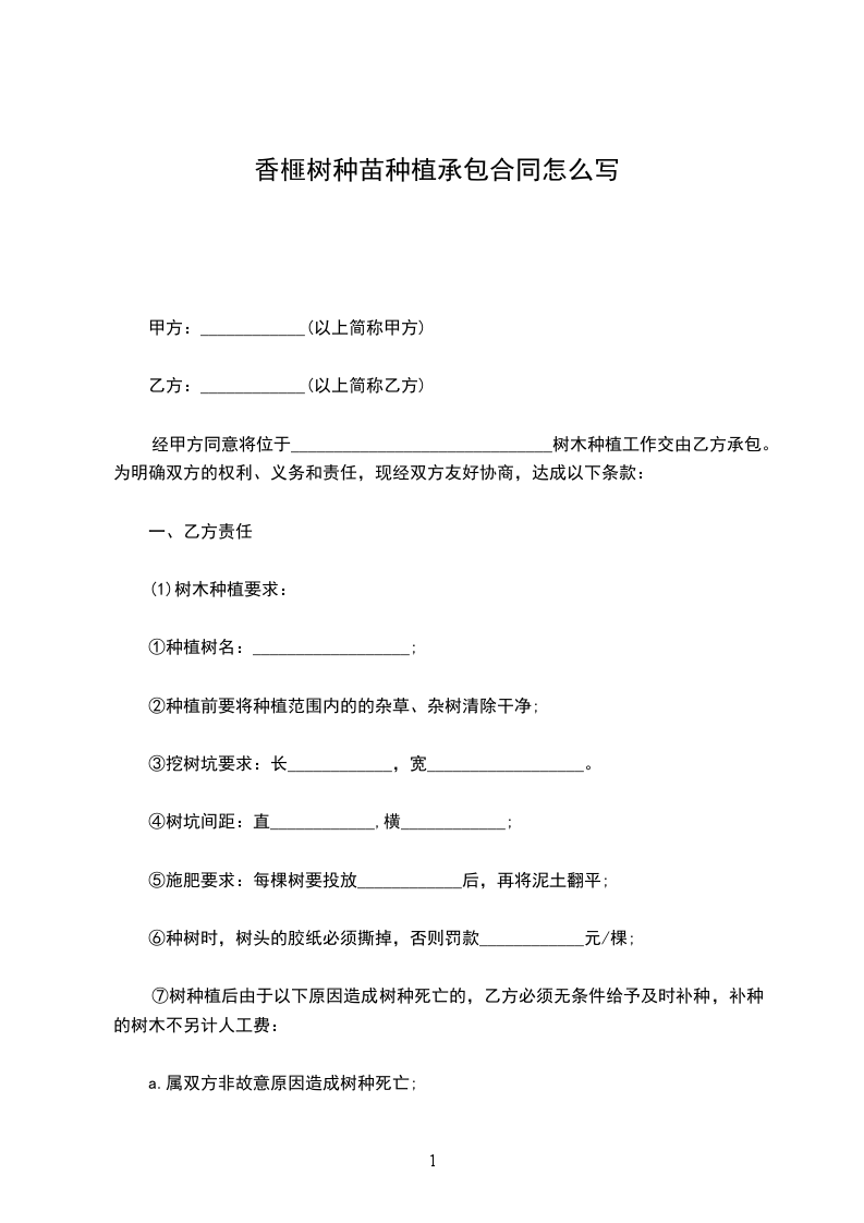 经甲方同意将位于______________________________树木种植工作交由乙方承包。为明确双方的权利、义务和责任,现经双方友好协商,达成以下条款: