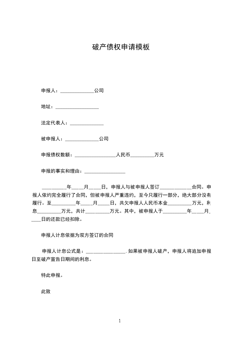 申报债权数额:_________________人民币__________万元