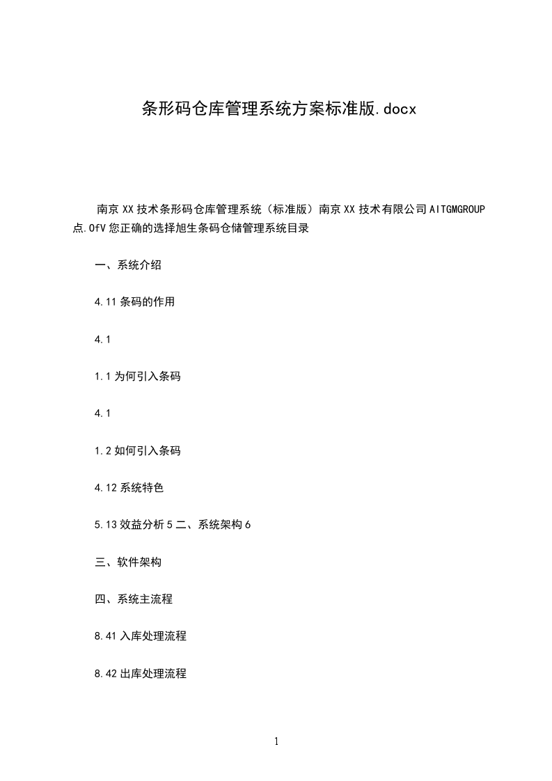 南京XX技术条形码仓库管理系统(标准版)南京XX技术有限公司AITGMGROUP点.OfV您正确的选择旭生条码仓储管理系统目录