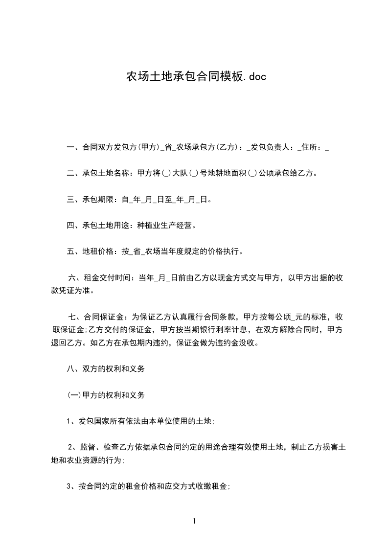 一、合同双方发包方(甲方)_省_农场承包方(乙方):_发包负责人:_住所:_