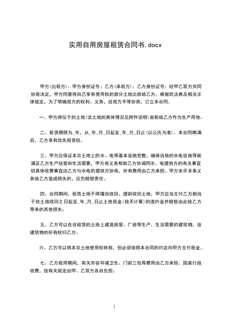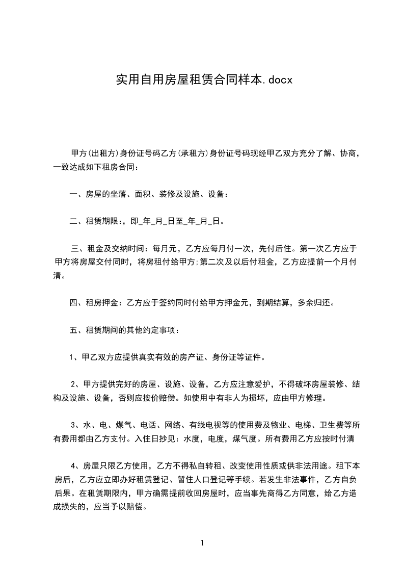 甲方(出租方)身份证号码乙方(承租方)身份证号码现经甲乙双方充分了解、协商,一致达成如下个人租房协议书:
