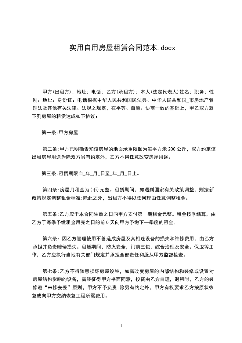 2、甲方提供完好的房屋、设施、设备,乙方应注意爱护,不得破坏房屋装修、结构及设施、设备,否则应按价赔偿。如使用中有非人为损坏,应由甲方修理。