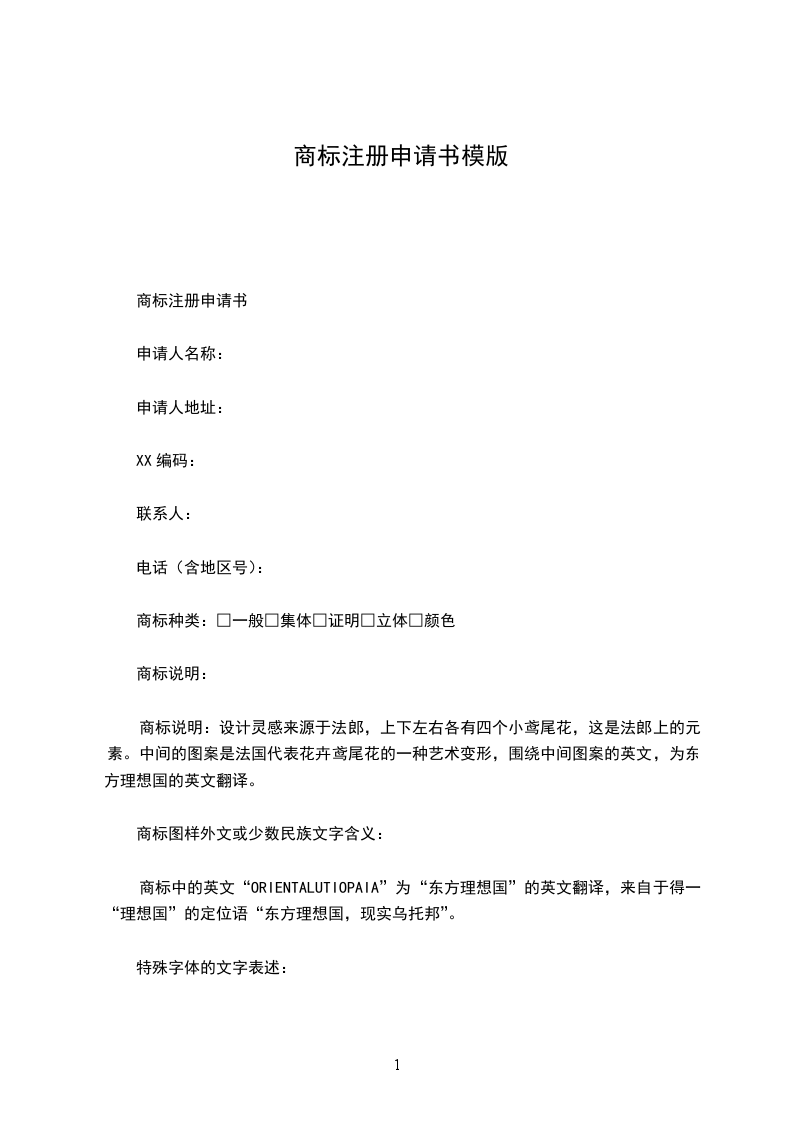 1.本书式为国内申请人申请商标注册时使用的书式。申请人应当按照要求如实填写,不得空项,不得擅自修改格式。申请书应当打字或者印刷。